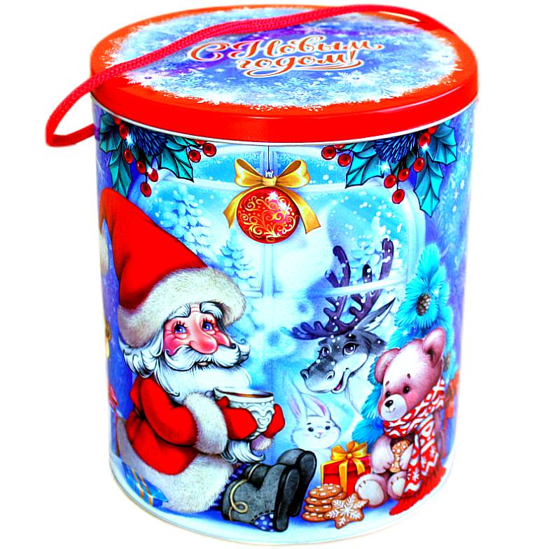 Детский подарок на Новый Год в жестяной упаковке весом 900 грамм